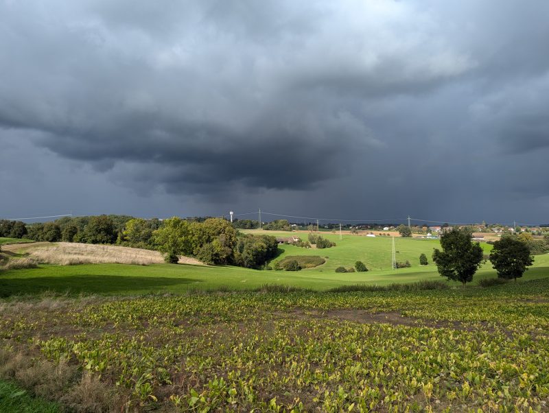 Es ist auch kälter und die Sonne wärmt durch die Wolken nicht so schnell auf wie bisher. Und auch drohen weitere Schauer am Nachmittag. Aber für komplette Regenausrüstung ist es noch nicht feucht genug.