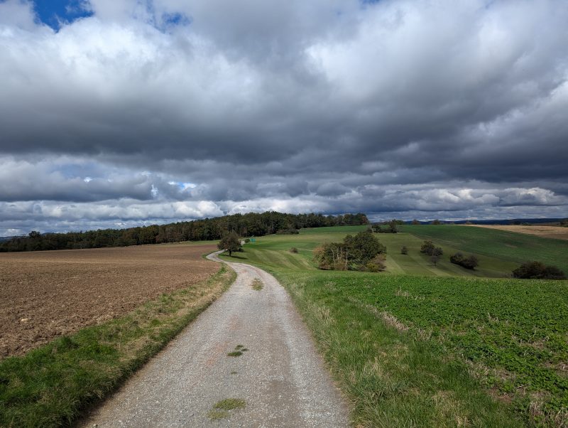 Eine nicht ganz autofreie Strecke abseits der Radwanderwege in hügeliger Mittelgebirgslandschaft. War ein schöner Radtag.