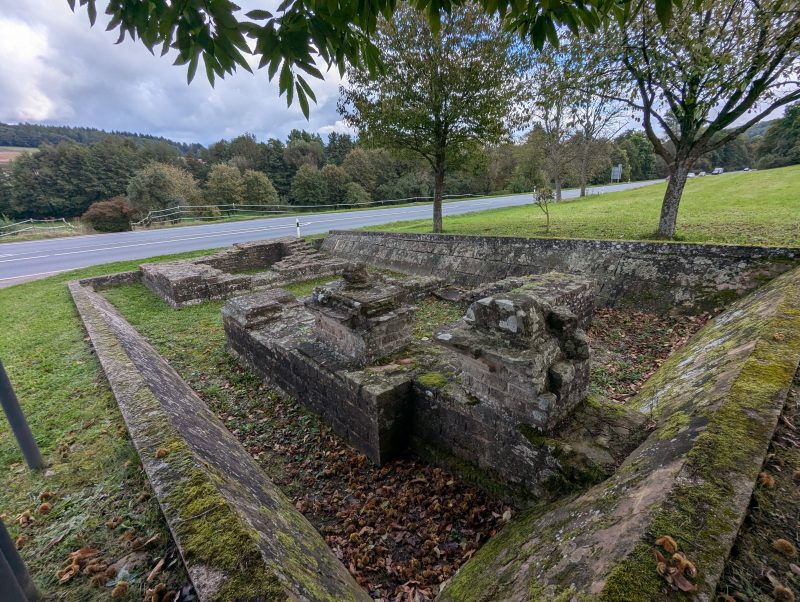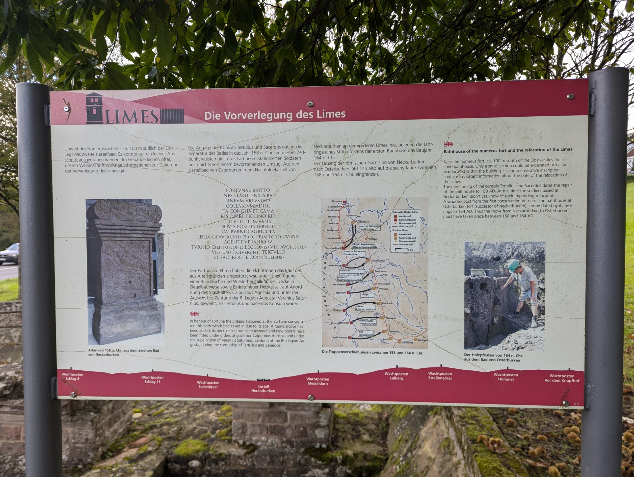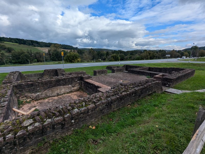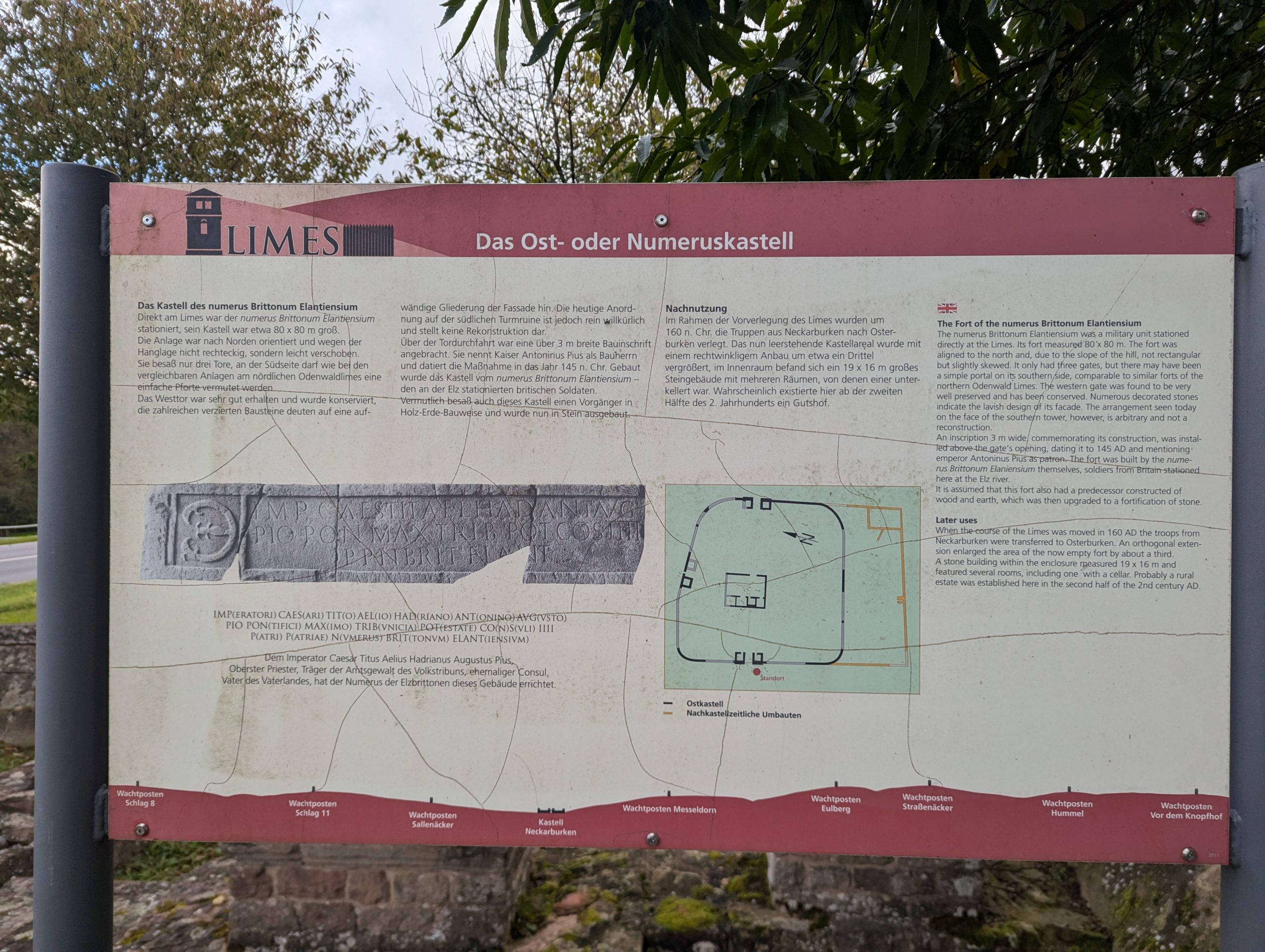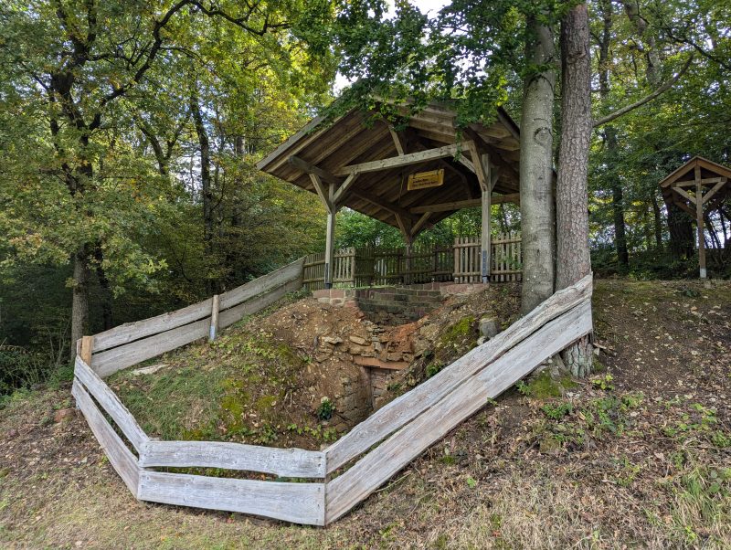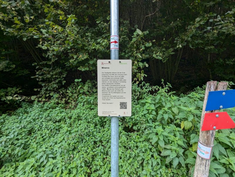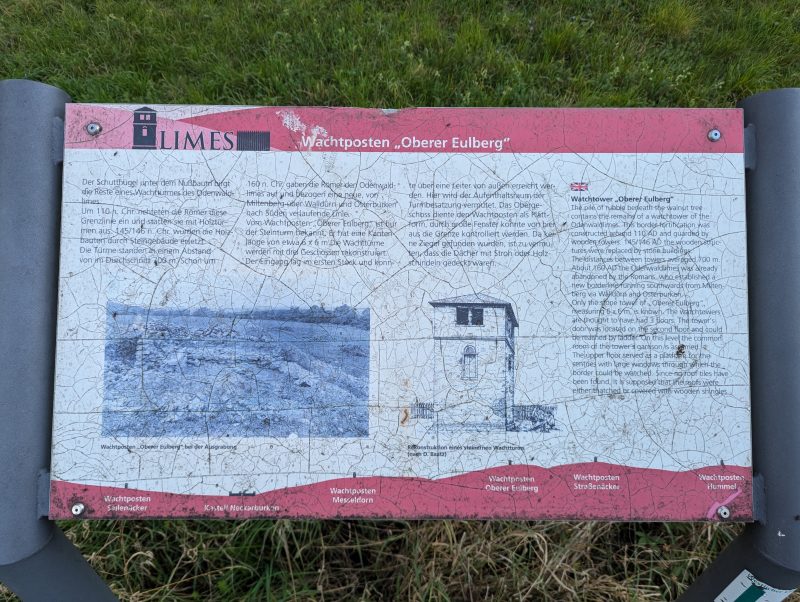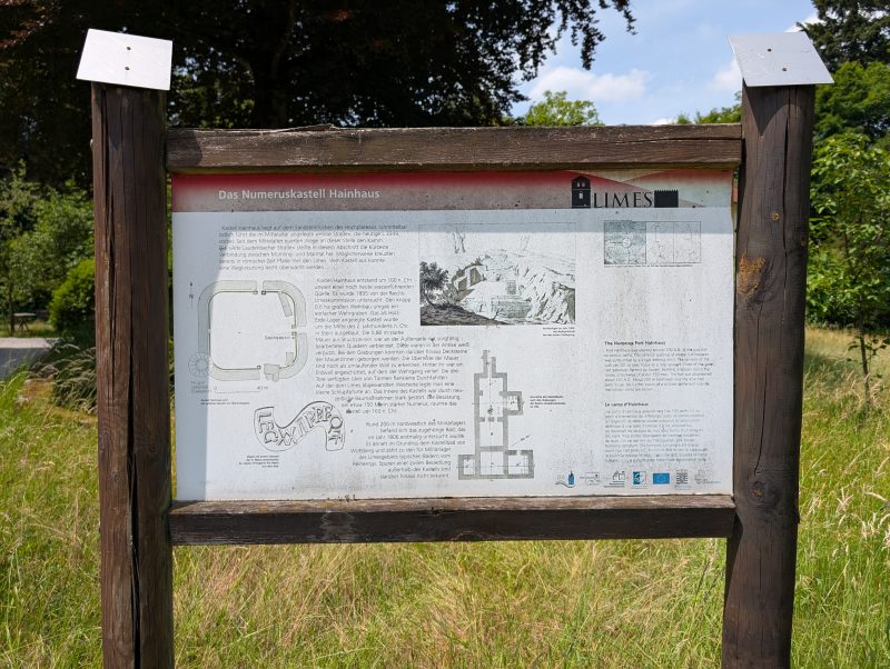 Mitte Juni 2025 ist es sehr warm und wir beschließen, einige Teile des Wanderweges wieder als Tandem-Wanderungen anzugehen. Ausgangspunkt dieser Tour ist ein Wanderparkplatz kurz vor Lützel Wiebelsbach. Mit dem Westlichen Limesweg und etwas später parallel zum Limesweg geht es in Richtung Haingrund. An einer Wegspinne im Wald verlassen wir schon wieder unseren Westlichen Limesweg und folgen dem Weg Br1 an Breitenbrunn vorbei und weiter steil hinab mit Lü2 bis Lützel-Wiebelsbach. Anschließend leitet uns dieser Weg wieder steil den Berg hinauf bis zu unserem Wanderparkplatz. Beeindruckend auf dieser Strecke sind die zwei Kupfermodelle der Kleinkastelle “Auf der Windlücke” und “Numeruskastell Lützenbach”.