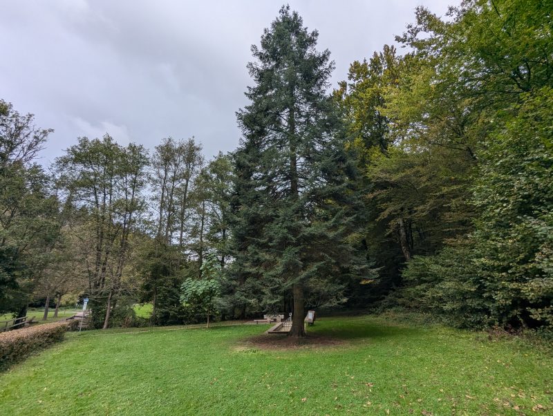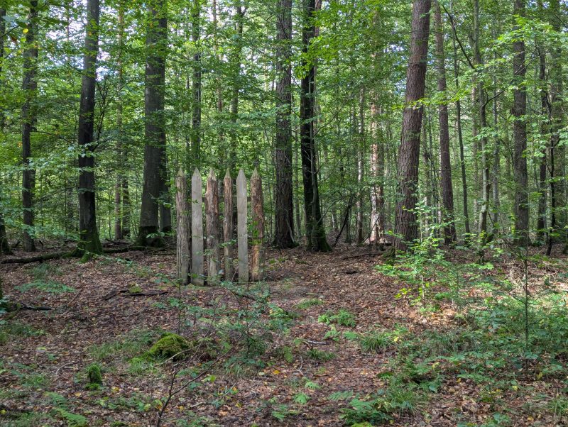 Doch dann konnte ich noch im Bild festhalten, wie eine Ruhebank von einem Rudel Jungfichten umzingelt und angegriffen wurde.