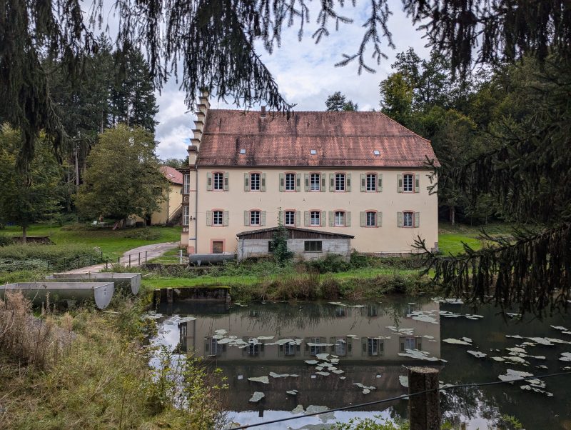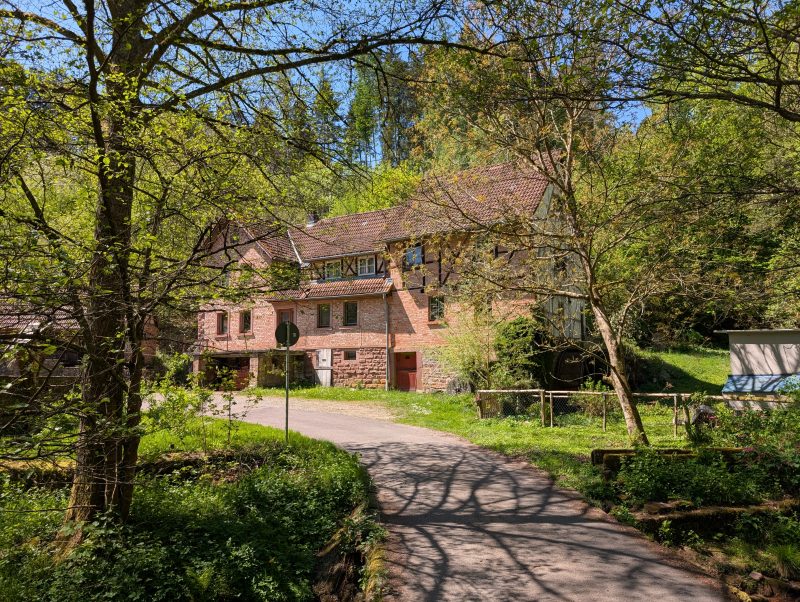 Die Wanderstrecke zum Rad startet an einer noch in Betrieb befindlichen Mühle an der Aar und folgt dem Bachtal Richtung Süden. Der Weg hält sich an den Hängen auf der östlichen Talseite und führt neben längeren flachen Teilstücken auch mal ein paar Meter den Hang hinauf. Gut zu laufen mit ein paar Wandereinlagen.