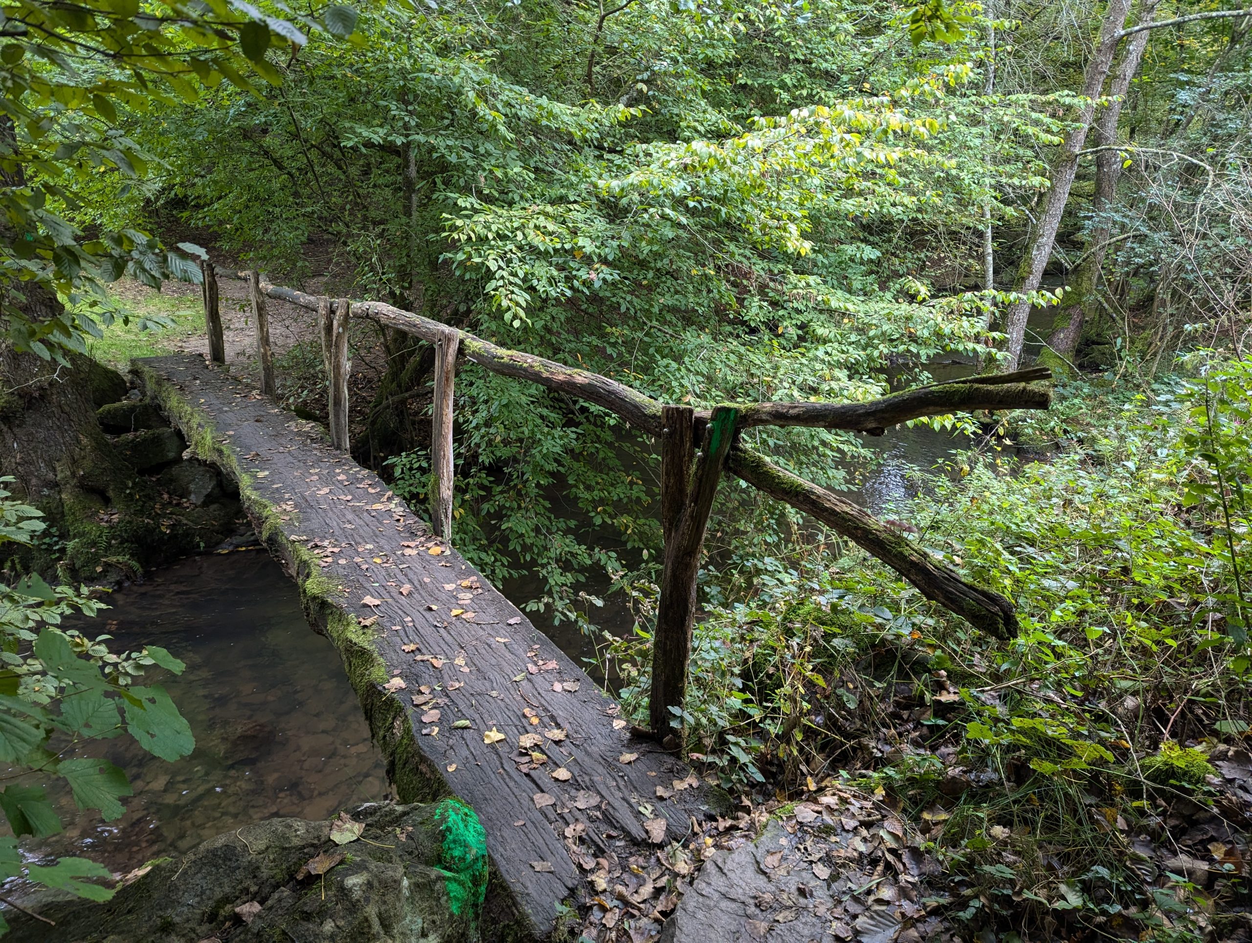 Mit diesem geht es dann zum nächten Etappenwanderparkplatz. Diesmal geht die Wanderung hinab ins Orketal und dann über einen Pfad durch Eichenwälder bis zum nahe Schoss Reckenberg abgestellen Rad.