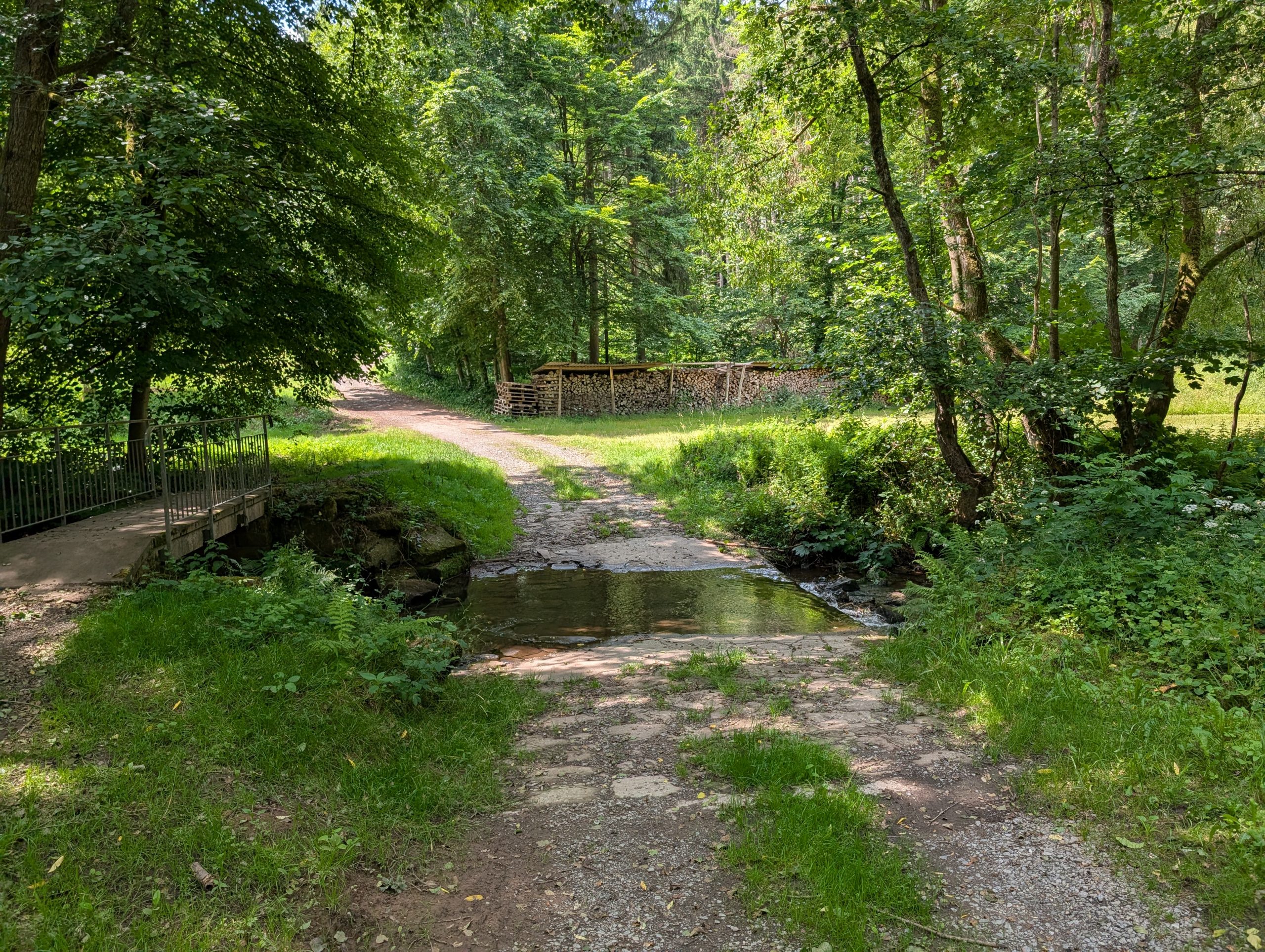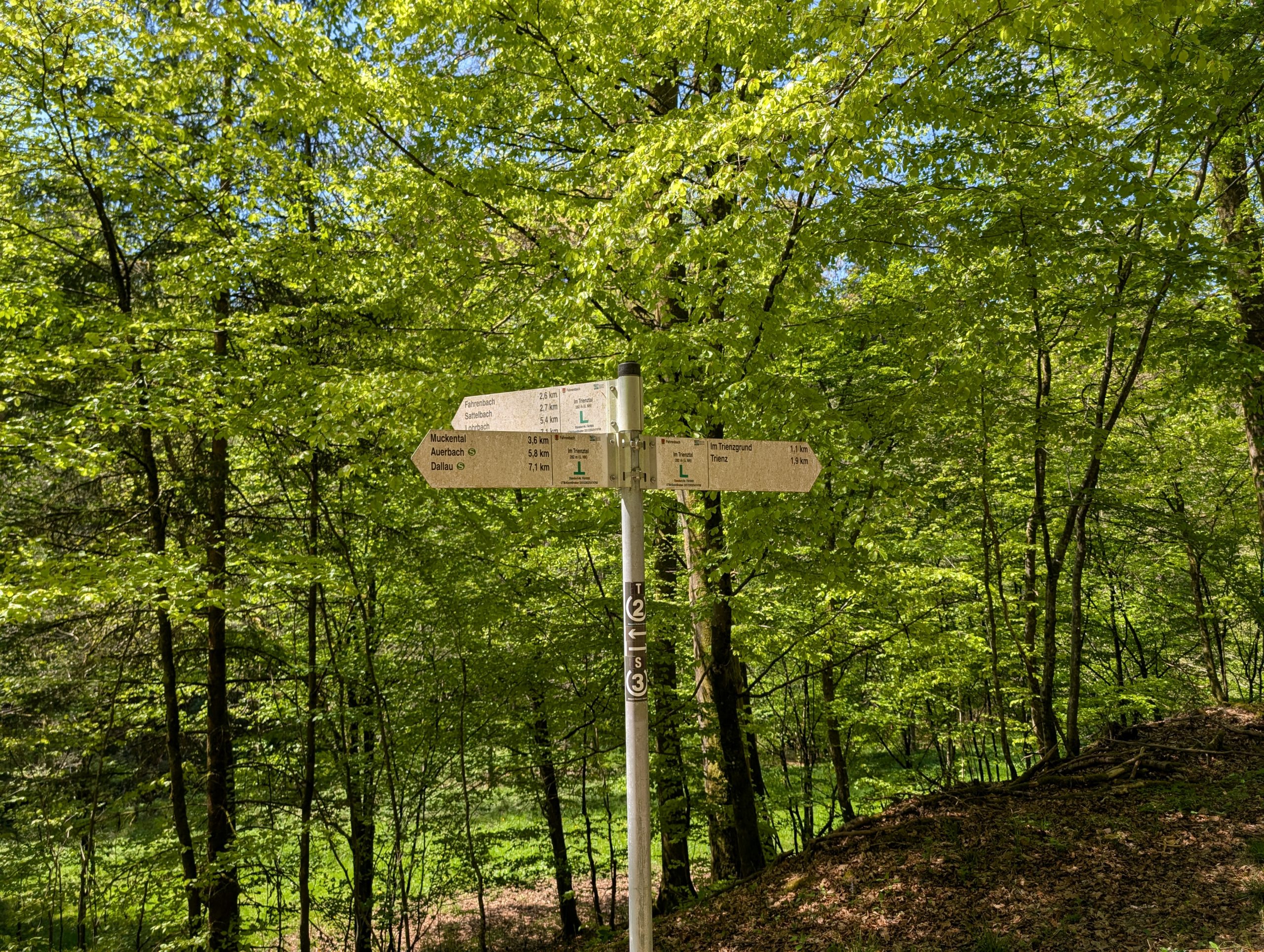 Der Weg ins Flachland zieht sich. Erst begleitet vom Angersbach, dann an der Steina ist immer minimales Gefälle unter den Sohlen. Aber zum rollen und geniessen bräuchte es ein Rad. Elf Kilometer ziehen sich die Schotterwege und trotz idealer Strecke wird aus laufen wandern.