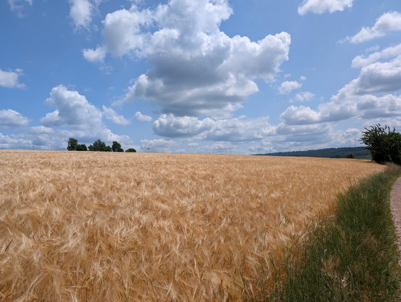 Einen HM Trainingslauf hatte ich schon lange nicht mehr versucht. Mit 3 Litern Wasser auf dem Rücken ging es vom Freizeitgebiet los Richtung Hünfeld über die Hügel, die dann vom Campinplatz aus auch Bäckerlaufstrecke waren.