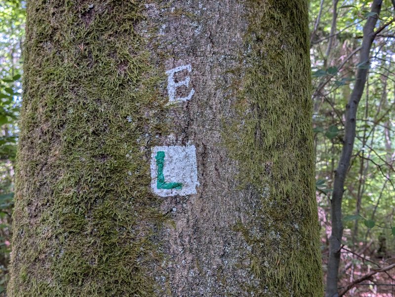 Ein letzte Anstieg und der nächste Wanderparkplatz in der Nähe der Eselshöhe wäre erreicht, wenn der letzte Zuweg zum Parkplatz nicht zugewachsen wäre. Auch ist der Parkplatz kein Parkplatz sondern eine unscheinbare Waldwegmündung mit einer nur eingeweihten bekannten wendehammerartigen Erweiterung.