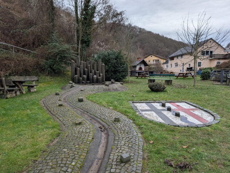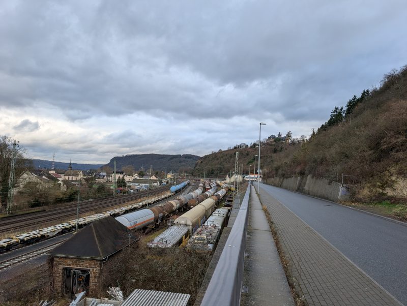 Nach längerer Pause wegen Schnee und Eis föhnt Mitte Januar 2026 eine 3 tägige Warmfront den glatten Belag von den Wegen, zumindest am Rheinhangrand. Leicht nieselig geht es daher auf eine teils steile schmierig matschige Kurzetappe. Von Ockenfels hoch auf die Rheinhölle, runter nach Linz mit seiner sehenswerten Altstadt, hoch zum Kaiserberg, runter zum Alwiesbach und am Ende noch einmal hoch zum Abbaugebiet am Dattenbacher Sportplatz.